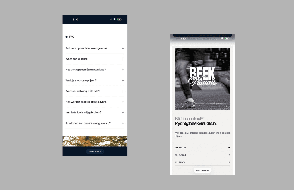 Het resultaat is een heldere en professionele online presentatie die het werk van BeekVisuals centraal stelt. De nieuwe website zorgt voor meer overzicht, een betere gebruikerservaring en een uitstraling die past bij de kwaliteit van het werk. Zo is BeekVisuals online net zo sterk vertegenwoordigd als offline.